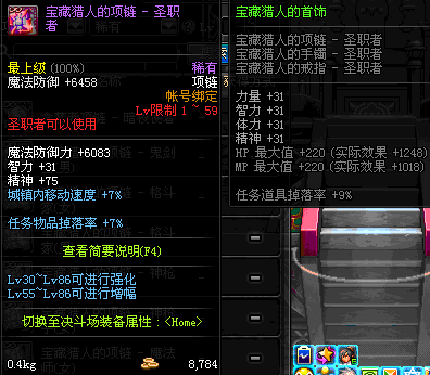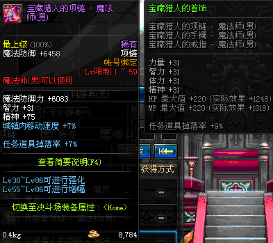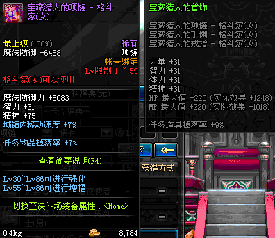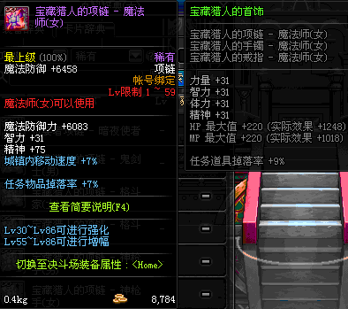 1~59 宝藏猎人的项链 - 魔法师(女) *在NPC艾丽丝的物品店购买 (虚空魔石碎片 900)