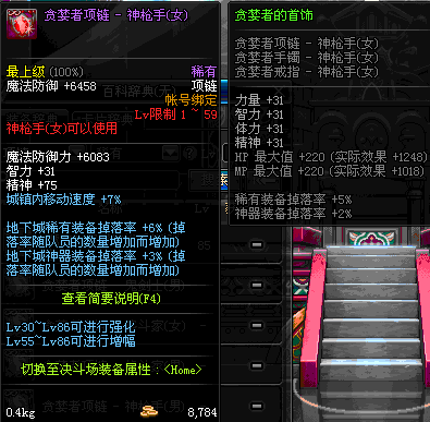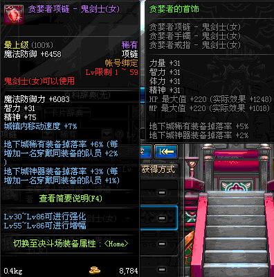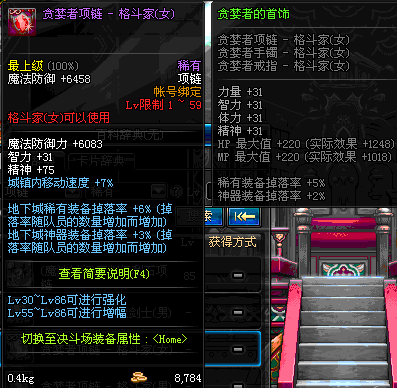 1~59 贪婪者项链 - 鬼剑士(女) *在NPC艾丽丝的物品店购买 (虚空魔石碎片 900)