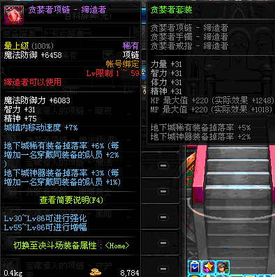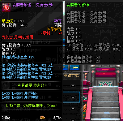 1~59 贪婪者项链 - 鬼剑士(男) *在NPC艾丽丝的物品店购买 (虚空魔石碎片 900)