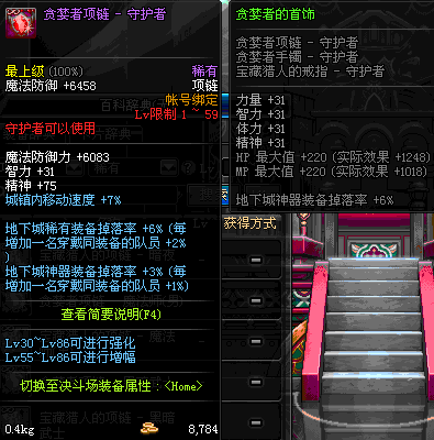 1~59 贪婪者项链 - 魔法师(男) *在NPC艾丽丝的物品店购买 (虚空魔石碎片 900)