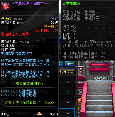 1~59 贪婪者项链 - 黑暗武士 *在NPC艾丽丝的物品店购买 (虚空魔石碎片 900)