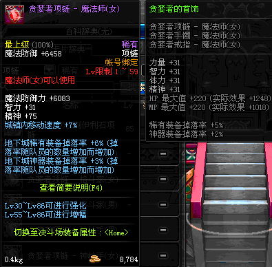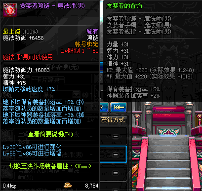1~59 贪婪者项链 - 魔法师(女) *在NPC艾丽丝的物品店购买 (虚空魔石碎片 900)