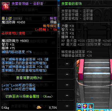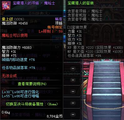 1~59 贪婪者项链 - 魔枪士 *在NPC艾丽丝的物品店购买 (虚空魔石碎片 900)