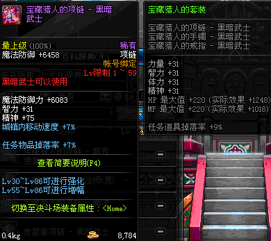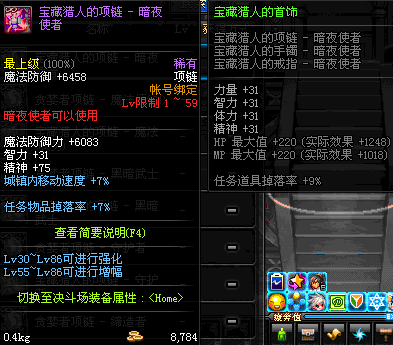 1~59 宝藏猎人的项链 - 暗夜使者 *在NPC艾丽丝的物品店购买 (虚空魔石碎片 900)