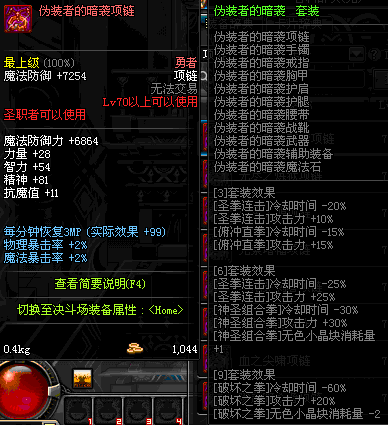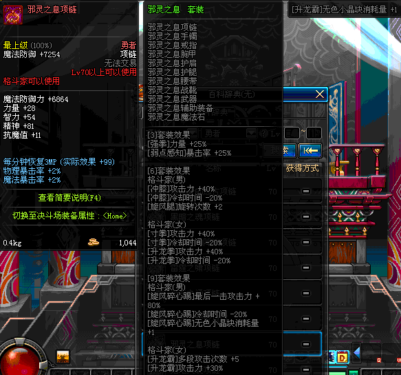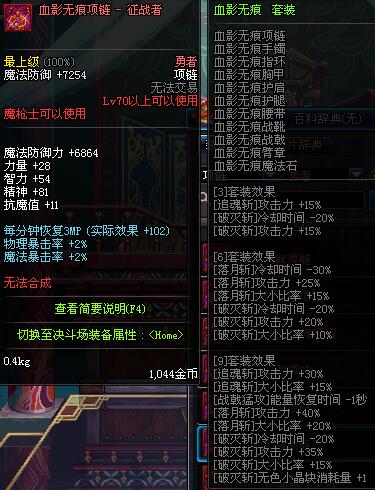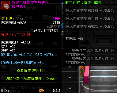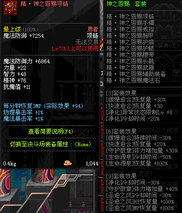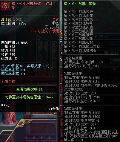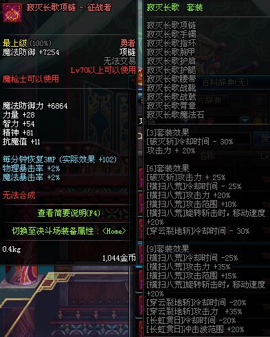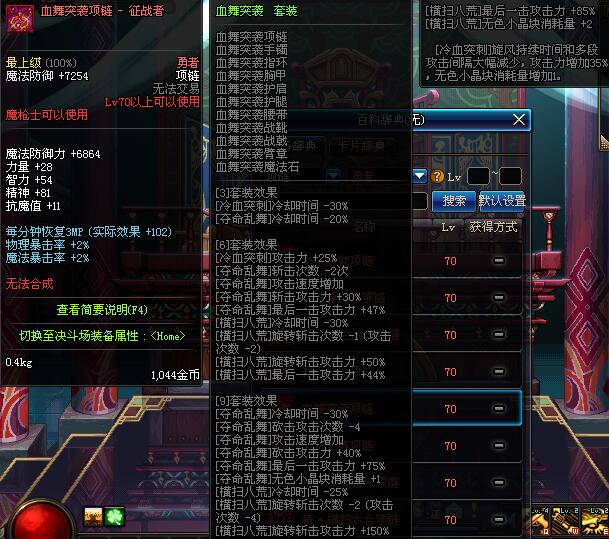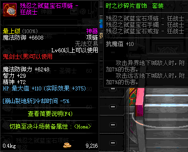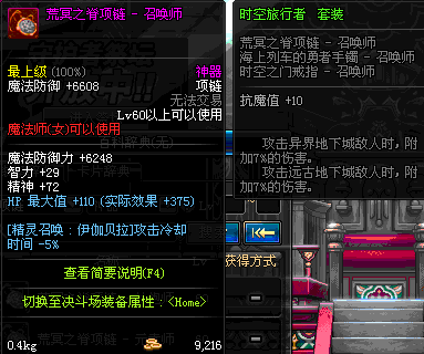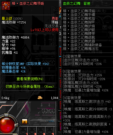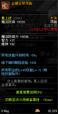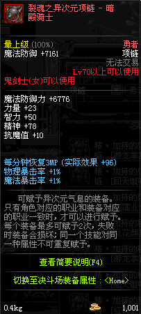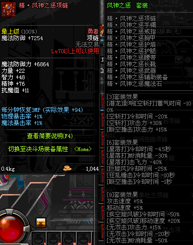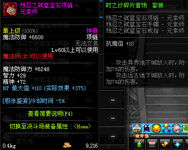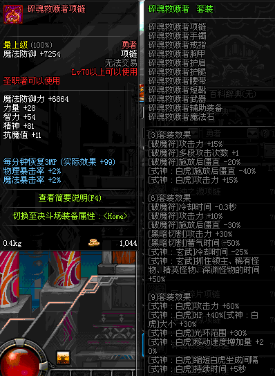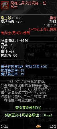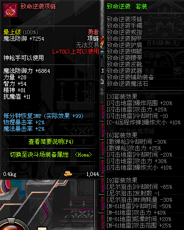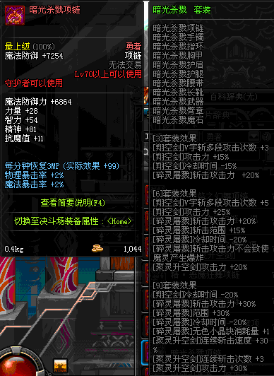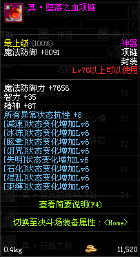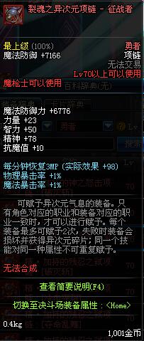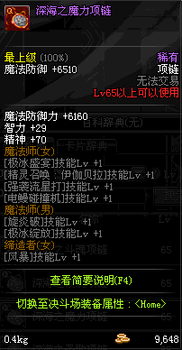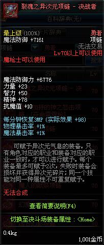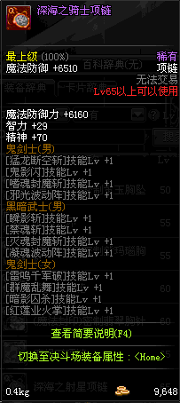 70 时空主宰者项链 *Lv69~76深渊地下城怪物掉落