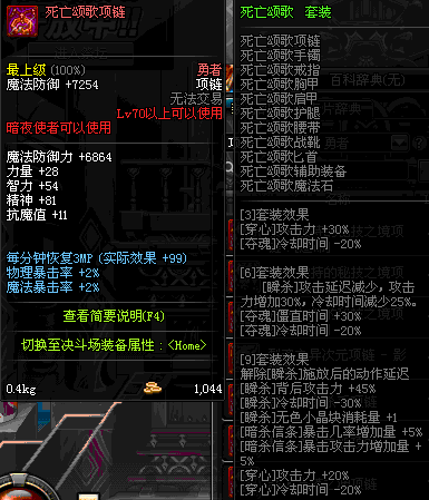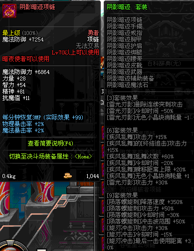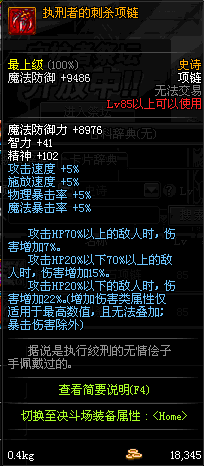 85 执行者的刺杀项链 *Lv84~91深渊地下城怪物掉落
