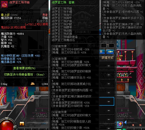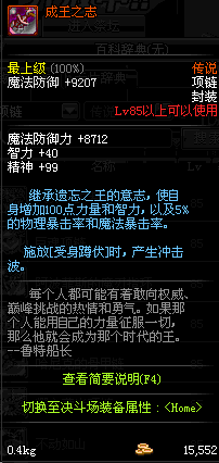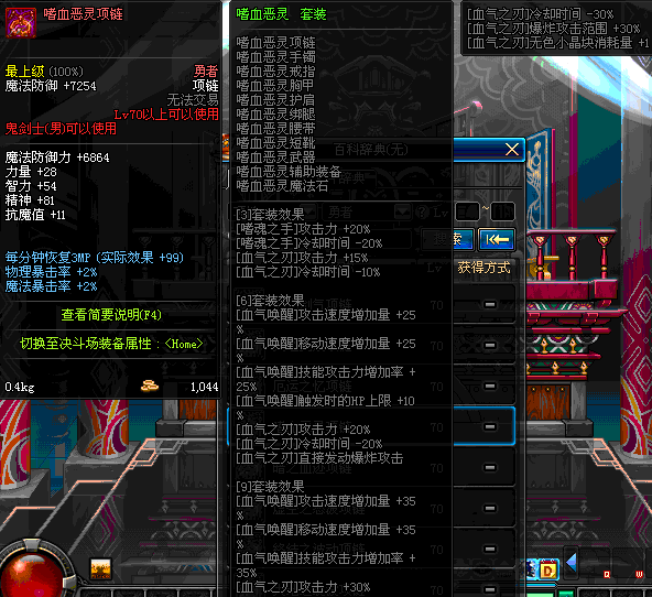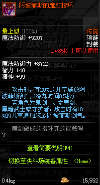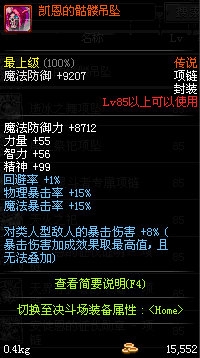 85 刀锋女王的铁血项链 *Lv84~91深渊地下城怪物掉落