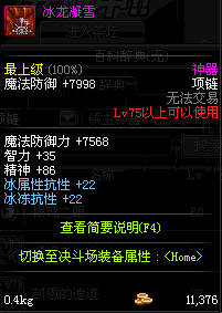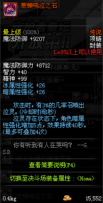 85 冰雪公主的霜语项链 *Lv84~91深渊地下城怪物掉落