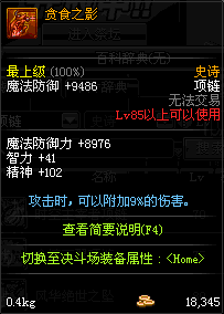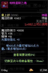 85 巨魂项链 *在NPC乌恩的物品店购买(魔能矿×1050)