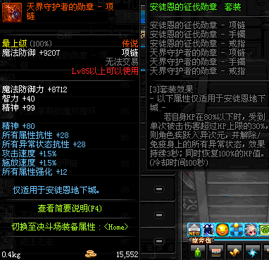 85 天界守护者的荣耀 - 项链 *在NPC乌恩的物品店购买(魔能矿 525)