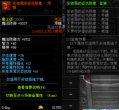 85 安徒恩的征伐证明 - 项链 *在NPC乌恩的物品店购买(魔能矿 525)