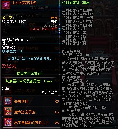 85 尘封的悲鸣项链 *昨日之巴斯顿 掉落 (在远古地下城里出没。)