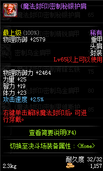| 65 | (魔法封印)密制秘银护肩 | *Lv65~71普通地下城怪物掉落 *完成[最后一次交易]任务 *使用Lv65~71怪物掉落的设计图进行制作 |