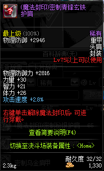 | 35 | (魔法封印)密制钛合金肩甲 | *Lv34~41普通地下城怪物掉落 |