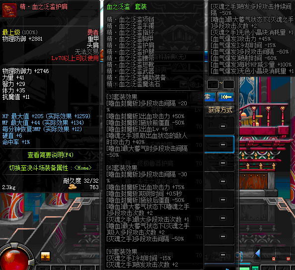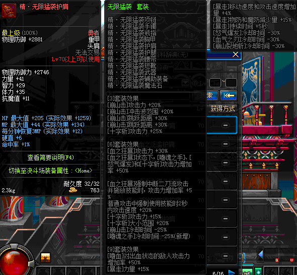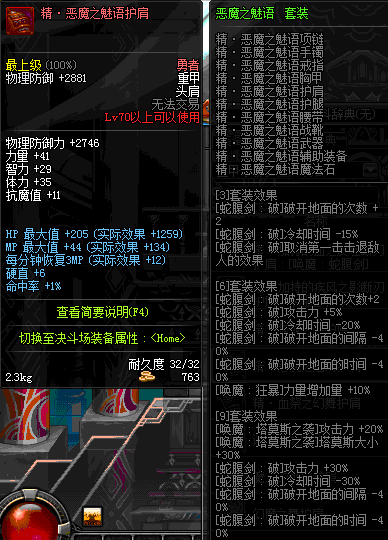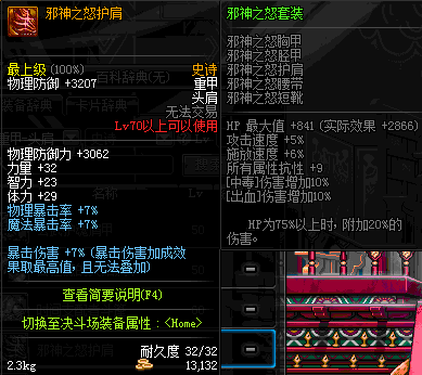 | 70 | 邪神之怒护肩 | *Lv69~76深渊地下城怪物掉落 | 邪神之怒套装 | |