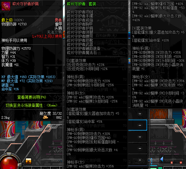 | 82 | 真 · 卡勒特的火炮师玄铁护肩 | *设计图(70LV以上普通地下城 登场的NPC加百利 出售) *卡勒特的火炮师玄铁护肩 → 用远古神器装备进化书升级(NPC船长鲁特 出售) |