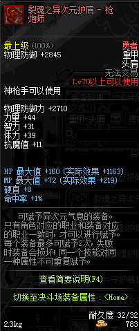 | 70 | 裂魂之异次元护肩 - 枪炮师 | |||