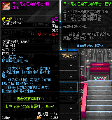 | 76 | 真 · 尼尔巴斯的意志链甲斗篷 | *设计图(70LV以上普通地下城 登场的NPC加百利 出售) *尼尔巴斯的意志链甲斗篷 → 用远古神器装备进化书升级(NPC船长鲁特 出售) |
