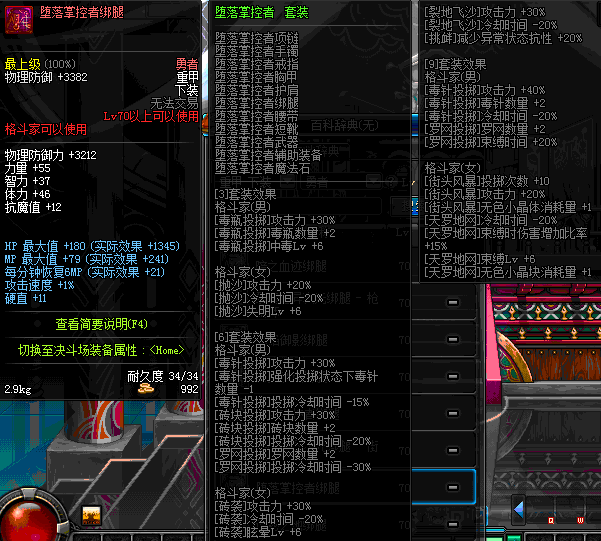 | 70 | 邪神之怒胫甲 | *Lv69~76深渊地下城怪物掉落 | 邪神之怒套装 | |