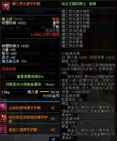| 85 | 圣物 :荣耀的天马守护神的铂金护腿 | *Lv85~91普通地下城怪物掉落 | ||