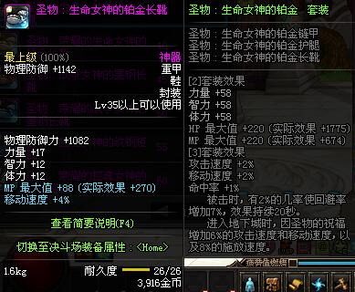 | 35 | 圣物 :生命女神的铂金长靴 | *Lv34~41普通地下城怪物掉落 |