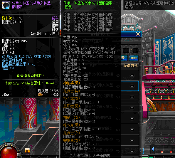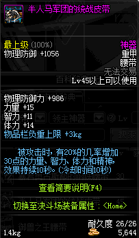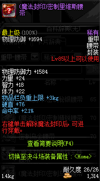 | 45 | 圣物 :战争女神的墨钢腰带 | *Lv45~51普通地下城怪物掉落 |