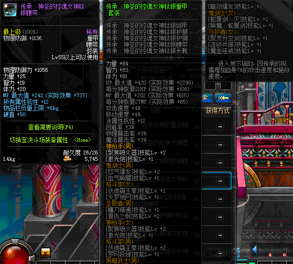 | 60 | 圣物 :荣耀的控魂女神的纹钢腰带 | *Lv58~66普通地下城怪物掉落 |