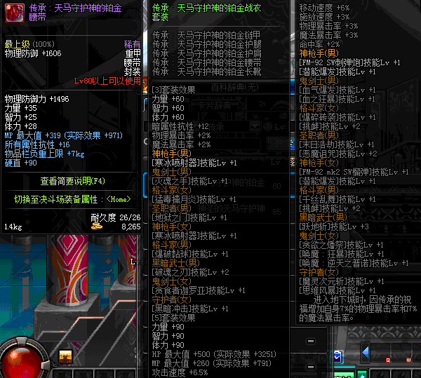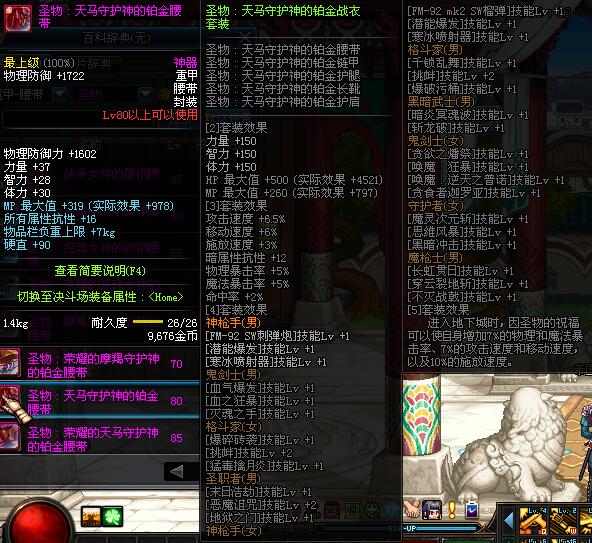 | 80 | 圣物 :天马守护神的铂金腰带 | *Lv80~86普通地下城怪物掉落 | ||