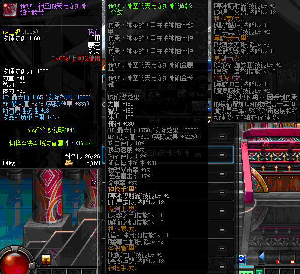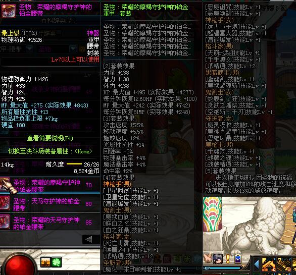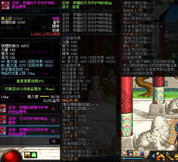 | 85 | 圣物 :荣耀的天马守护神的铂金腰带 | *Lv85~91普通地下城怪物掉落 | ||