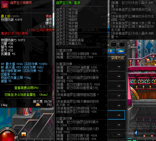 | 70 | 圣物 :荣耀的摩羯守护神的铂金腰带 | *Lv70~76普通地下城怪物掉落 |