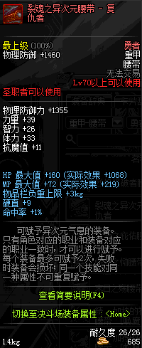 | 70 | 裂魂之异次元腰带 - 征战者 | |||