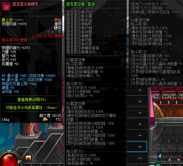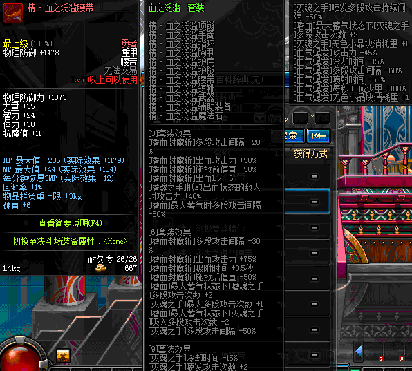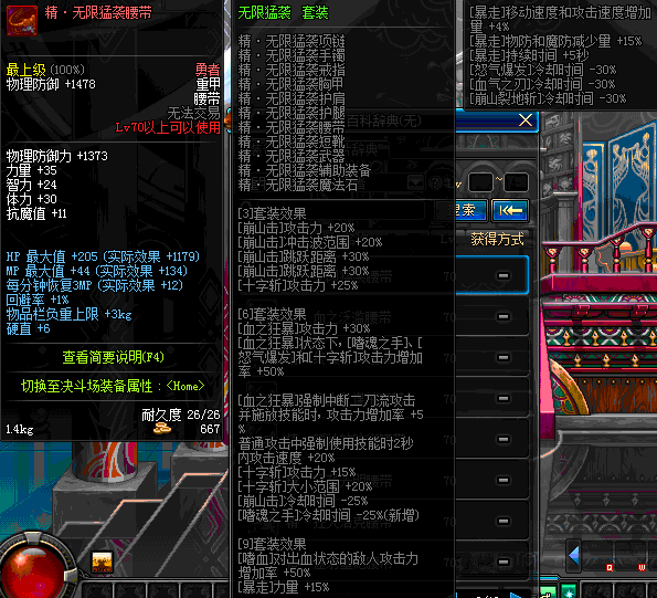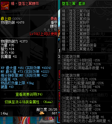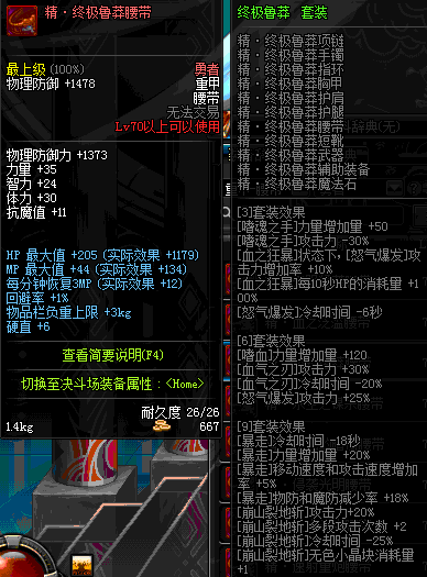 | 70 | 邪神之怒腰带 | *Lv69~76深渊地下城怪物掉落 | 邪神之怒套装 | |