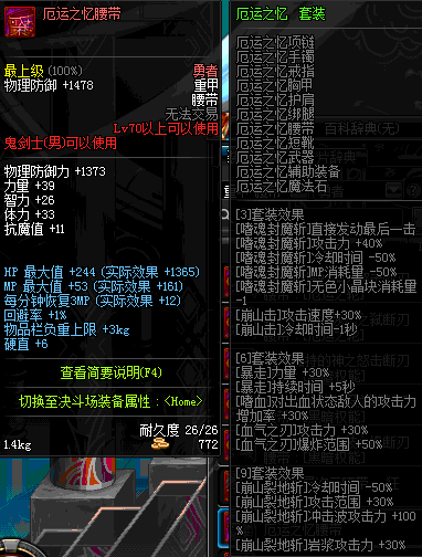 | 30 | 暴君奥古斯都的钢铁腰带 | *暴君奥古斯都 掉落(暴君的祭坛) *在NPC克伦特的物品店购买(阿拉德陨石×64) |