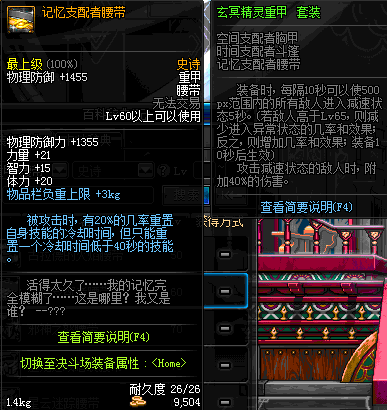 | 60 | 记忆支配者腰带 | *在NPC歌兰蒂斯·格拉西亚的物品店购买 | 玄冥精灵重甲 套装 | |