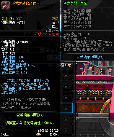 | 75 | 逆龙之战暗袭腰带 | *Lv74~81深渊地下城怪物掉落 | 逆龙之战 套装 | |