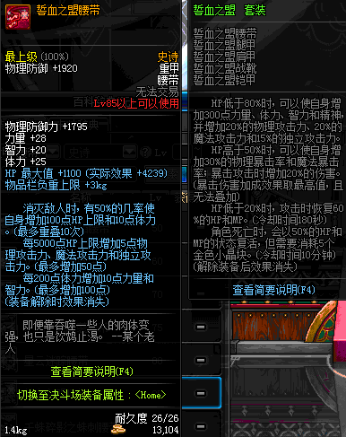 | 85 | 誓血之盟腰带 | *Lv84~91深渊地下城怪物掉落 | 誓血之盟 套装 | |
