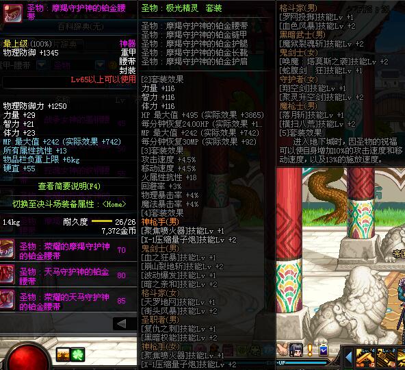 | 65 | 圣物 :摩羯守护神的铂金腰带 | *Lv65~71普通地下城怪物掉落 |