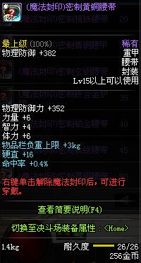 | 15 | (魔法封印)密制黄铜腰带 | *Lv13~21普通地下城怪物掉落 *完成[[魔法封印防具]天才武道家的试炼(2/3)]任务 *使用Lv13~21怪物掉落的设计图进行制作 |