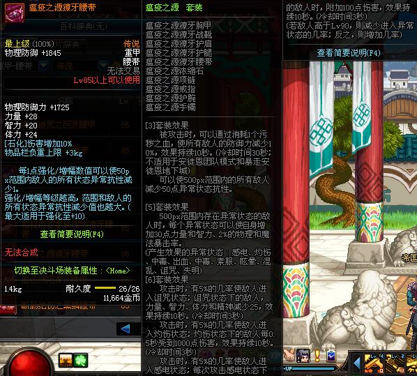 | 85 | 瘟疫之源獠牙腰带 | *昨日之巴斯顿 掉落 (在远古地下城里出没。) *从NPC鲁特的物品店出售的[瘟疫之源防具礼盒]中获得 |