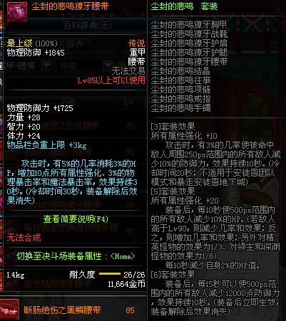 | 85 | 断肠绝伤之黑鳞腰带 | 昨日之巴斯顿 掉落 (在远古地下城里出没。) *从NPC鲁特的物品店出售的[断肠绝伤防具礼盒]中获得 |
