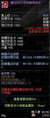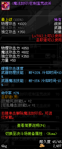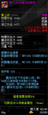 | 45 | 天启战斧 | *Lv45~51普通地下城怪物掉落 *在加百利的神秘商店购买 |
