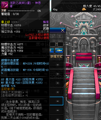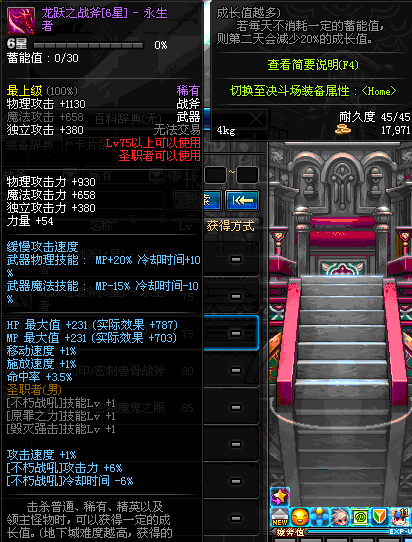 | 75 | 狂乱之舞战斧 | *Lv75~81普通地下城怪物掉落 *在加百利的神秘商店购买 |
