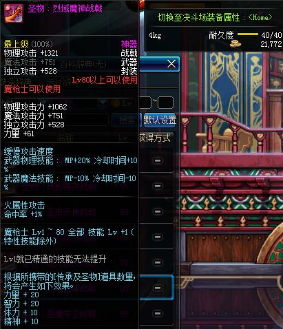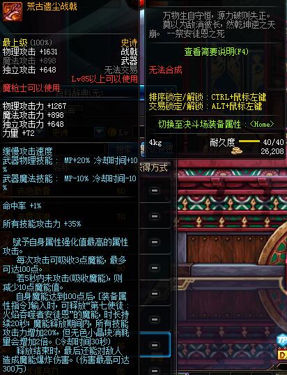 | 80 | 圣物 : 烈域魔神战戟 | *Lv80~86普通地下城怪物掉落 | ||