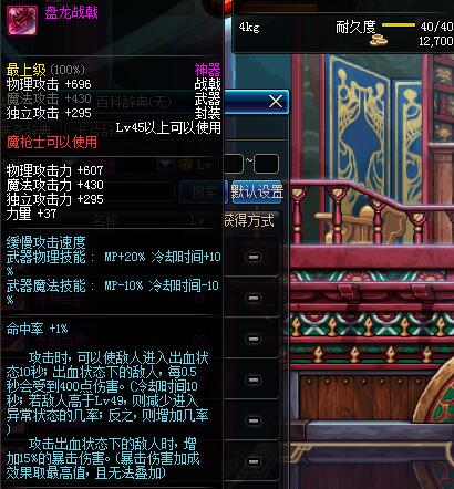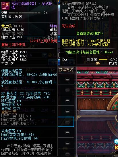 | 45 | 盘龙战戟 | *Lv45~51普通地下城怪物掉落 *在加百利的神秘商店购买 |