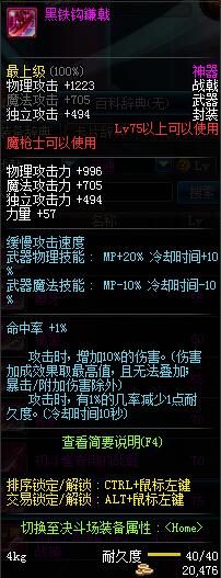 | 75 | 黑铁钩鐮戟 | *Lv75~81普通地下城怪物掉落 *在加百利的神秘商店购买 |