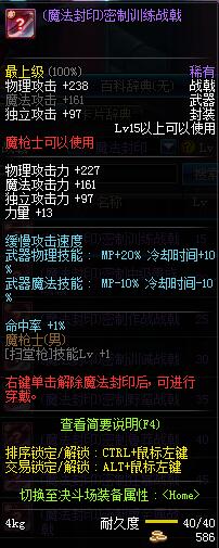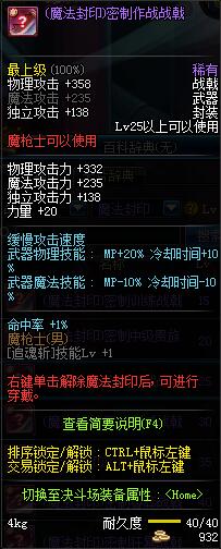 | 15 | (魔法封印)密制训练战戟 | *Lv13~21普通地下城怪物掉落 *完成[专职贺礼]任务 |