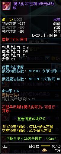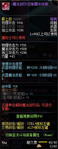 | 40 | (魔法封印)密制鲁莽战戟 | *Lv39~46普通地下城怪物掉落 *完成[变异的美神恩泽]任务 *使用Lv39~46怪物掉落的设计图进行制作 |