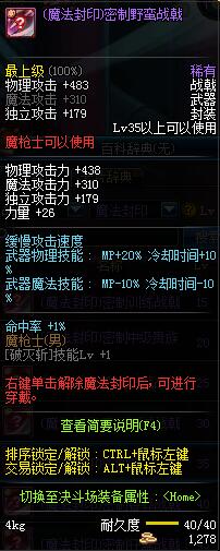 | 35 | (魔法封印)密制野蛮战戟 | *Lv34~41普通地下城怪物掉落 |