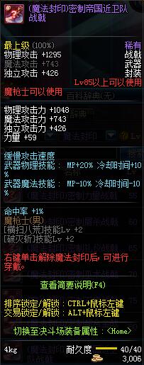 | 85 | (魔法封印)密制帝国近卫队战戟 | *Lv85~91普通地下城怪物掉落 *完成[黑色迷雾]任务 |