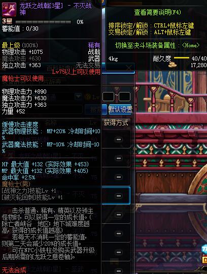 | 75 | 龙跃之战戟[3星] - 不灭战神 | *完成二次觉醒任务后可以从NPC小铁柱处获得此道具。 | ||